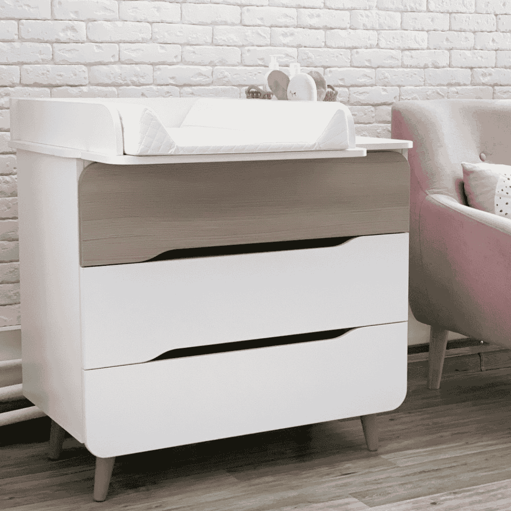 Moderní design komody Belitto od Gekko Kids dobře doplňují funkční prvky: 3 výsuvné zásuvky, vestavěný montážní popruh pro upevnění na zeď a možnost instalace přebalovacího pultu (prodává se samostatně).