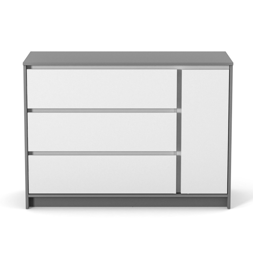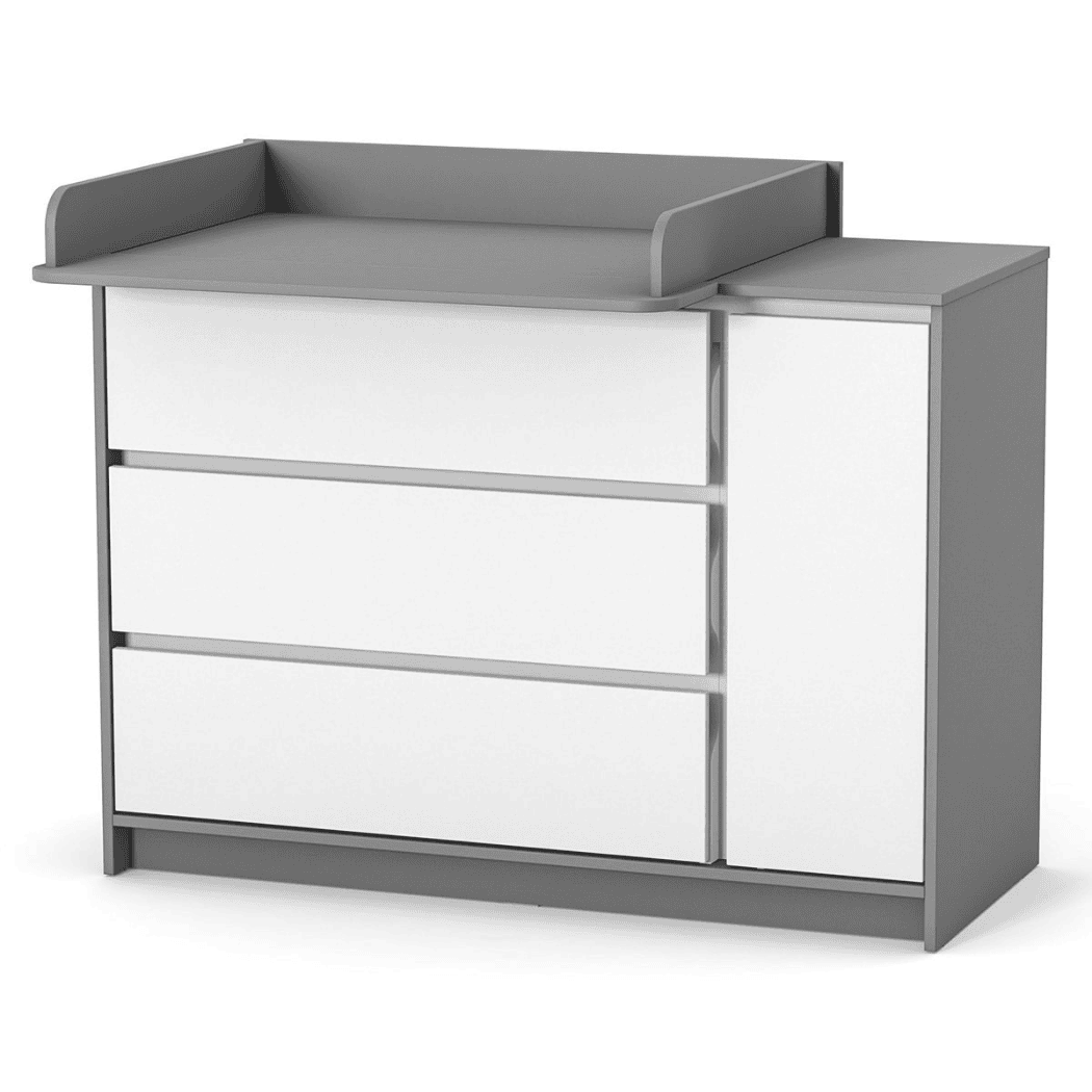 Komoda Lovitto 1200 je vybavena třemi prostornými výsuvnými zásuvkami s teleskopickými vodítky, které zajišťují plynulý pohyb. Za dvířky se nacházejí dvě police, které se skvěle hodí pro ukládání dětských věcí, hraček nebo hygienických potřeb.