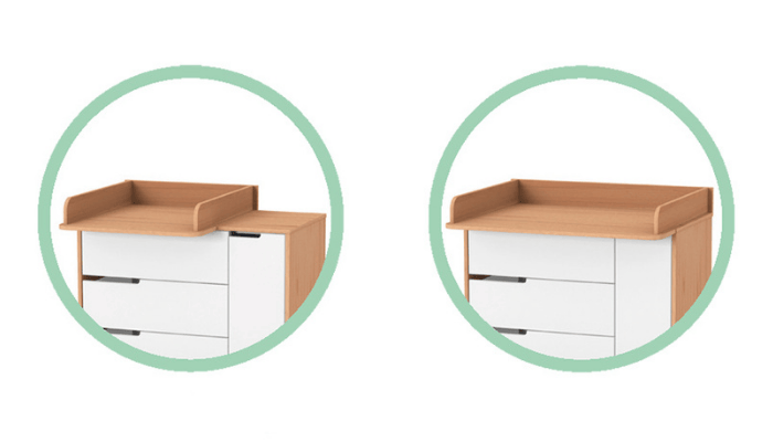 Na komodu Lussi 900 lze nainstalovat dva typy přebalovacích pultů (prodávají se samostatně):