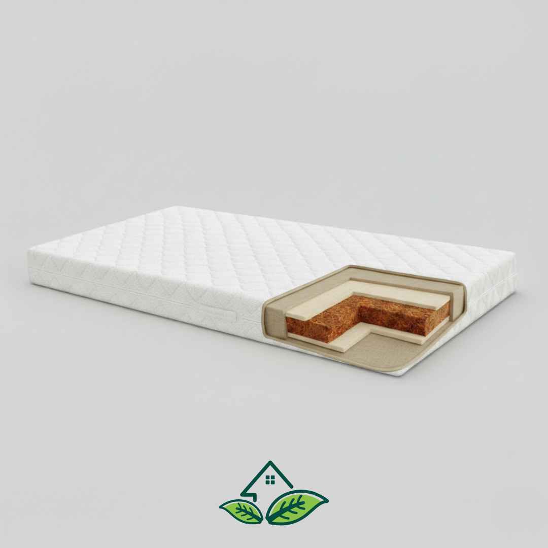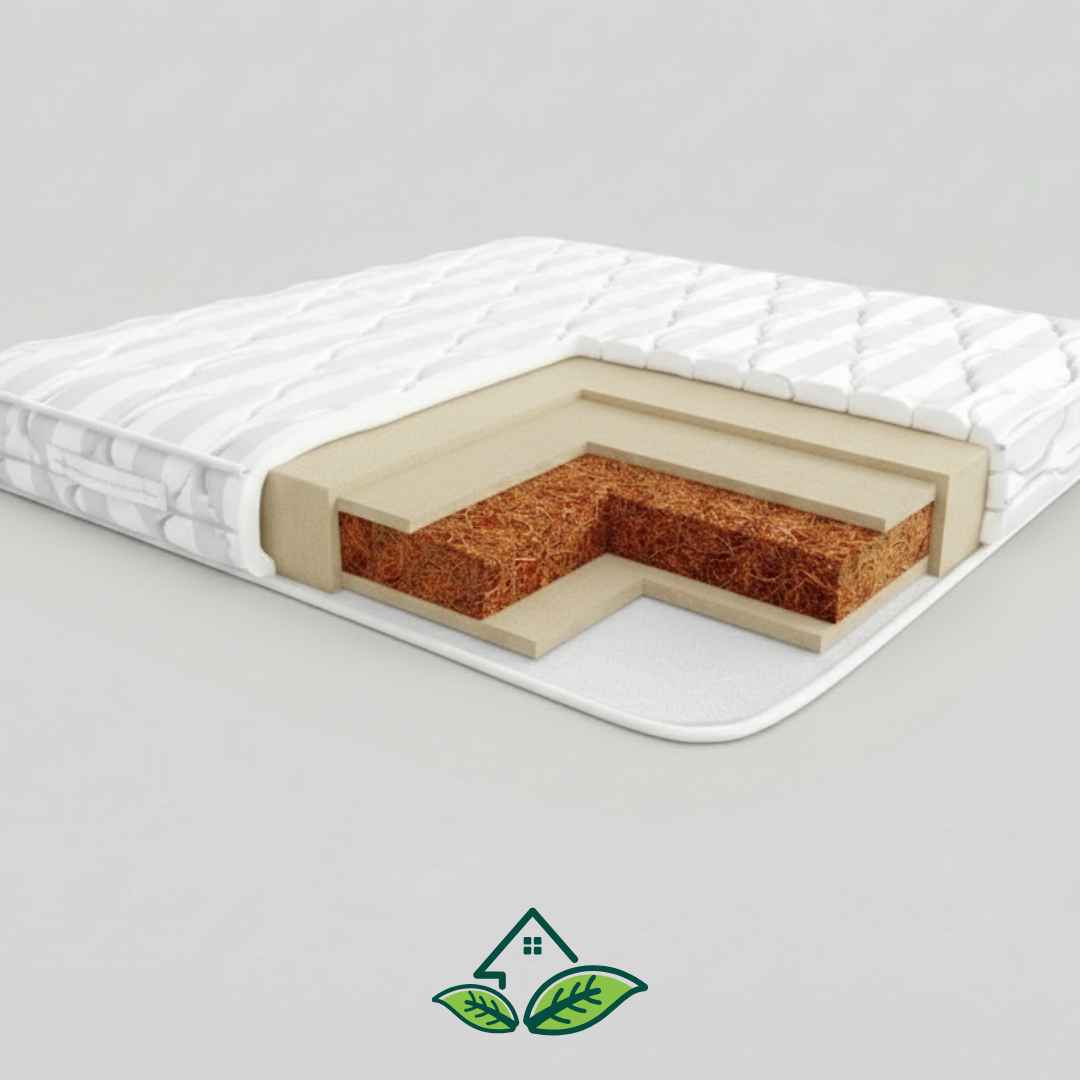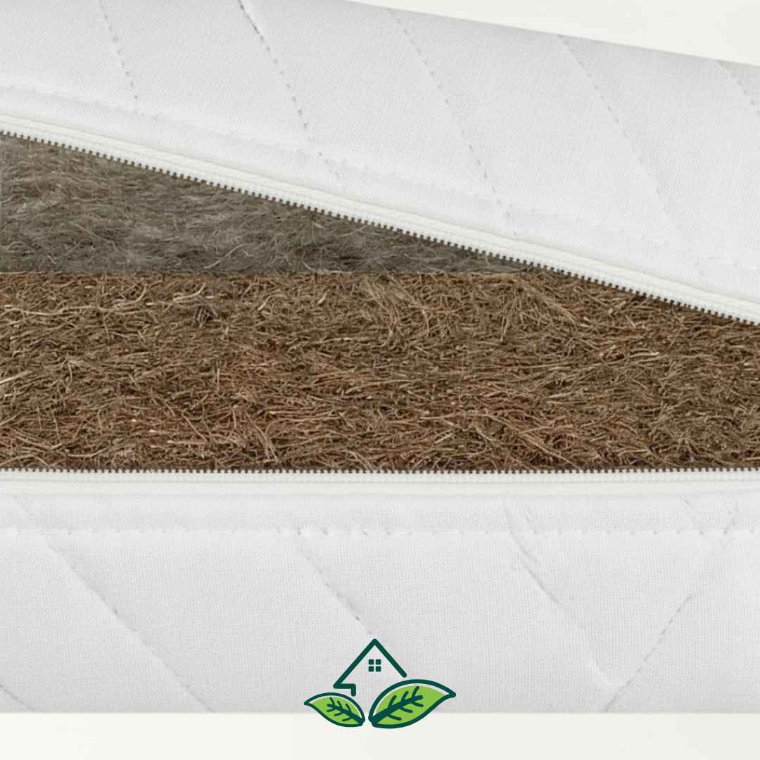 Kokosové vlákno – 100% přírodní materiál vyrobený z kokosových vláken spojených přírodním latexem (85 % kokosové vlákno / 15 % latex). Díky vysokému obsahu ligninu a latexu je materiál pružný, odolný vůči vlhkosti, trvanlivý a prodyšný. Hypoalergenní a ekologický.