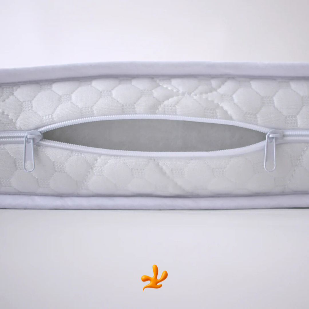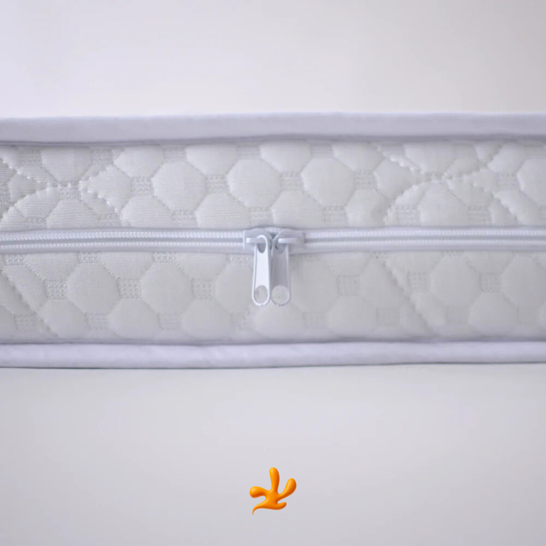 Dětská matrace s dvojí tvrdostí na bázi polyuretanové pěny a kokosového vlákna.