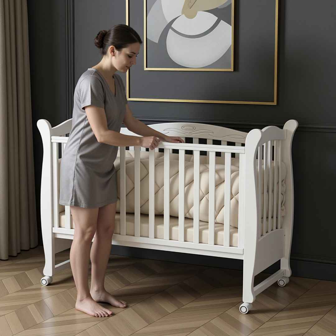 Velmi praktická funkce, která pomáhá tiše přesouvat dětskou postýlku po pokoji.