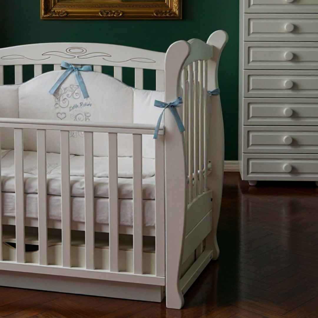 Houpací mechanismus s aretací pro uklidnění dítěte. Se zásuvkou na uložení věcí – zásuvka je uzavřená, rozdělena na 2 sekce a umístěná na podlaze (není zavěšená na postýlce). Kvalitní teleskopické pojezdy od německé značky Hafele;