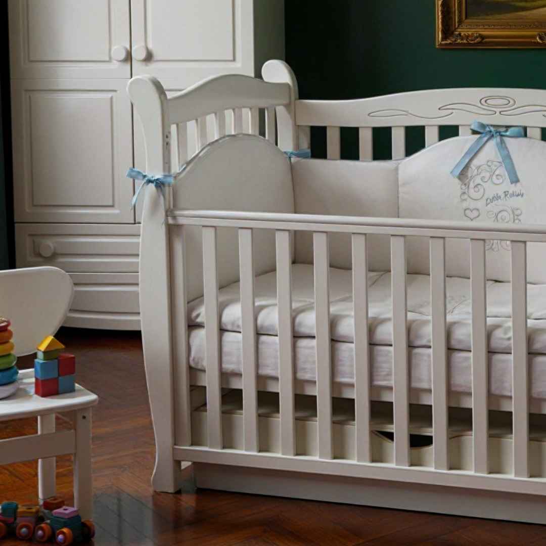 Dětská postýlka s klasickým designem Lappi z přírodního dřeva, ošetřená ekologicky šetrnými barvami!