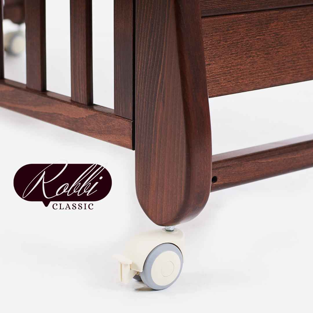 Postýlka Robbi má pohyblivou bočnici, díky které se rodiče mohou pohodlně naklonit k dítěti. Sklopnou část postýlky lze snadno spustit nebo úplně odstranit, čímž se Robbi promění v postel nebo pohovku. Pohyblivá bočnice je vybavena bezpečnostním zámkem, takže ji dítě samo nesníží. Nejprve je třeba bočnici mírně nadzvednout, lehce stlačit nohou a teprve poté spustit. Mechanismus spouštění bočnice je skrytý.