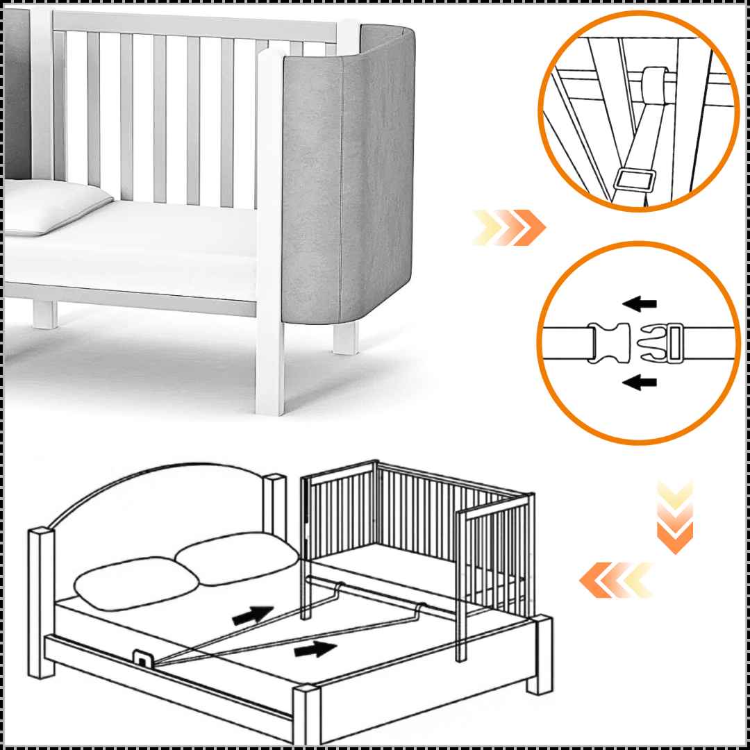 Pomocí speciálního upevňovacího systému je postýlka Zukko Soft bezpečně připevněna k rodičovské posteli.