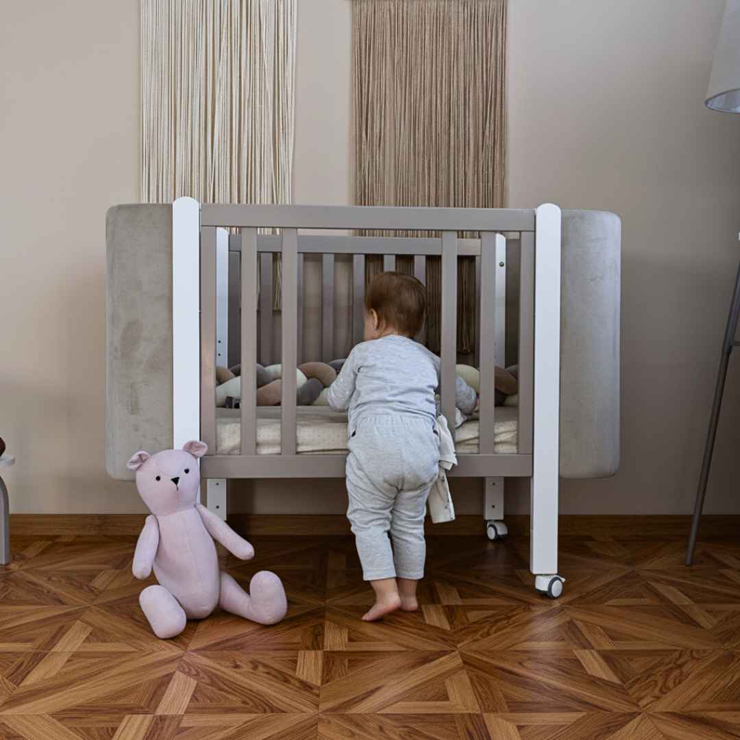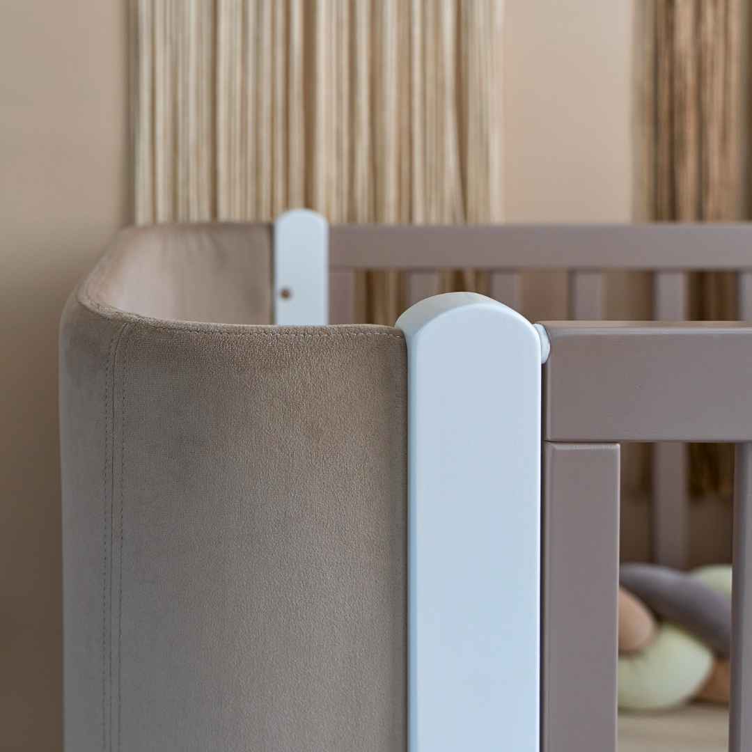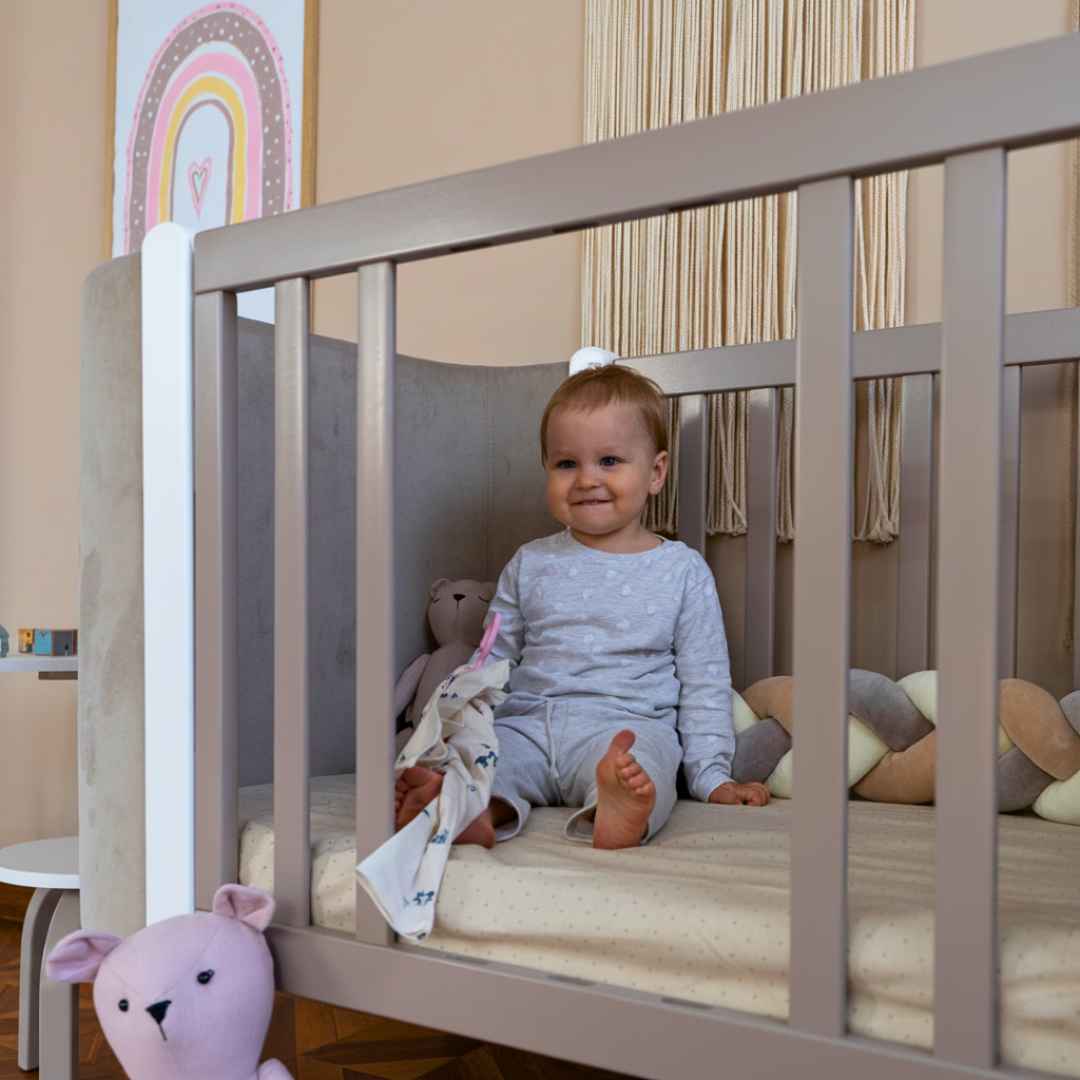 Boční stěnu postýlky lze zcela sejmout a vytvořit tak přístavnou postýlku.