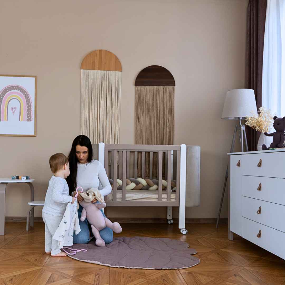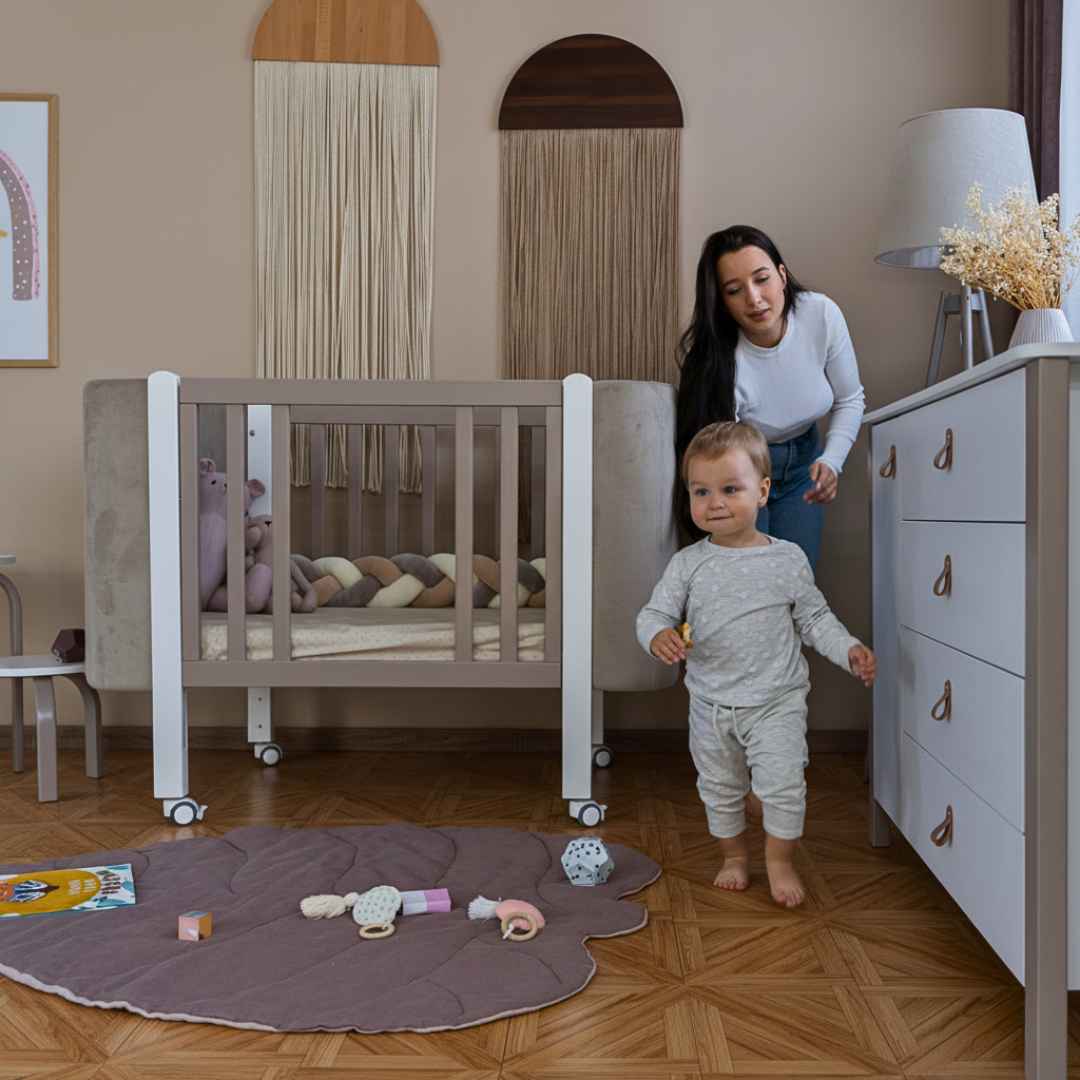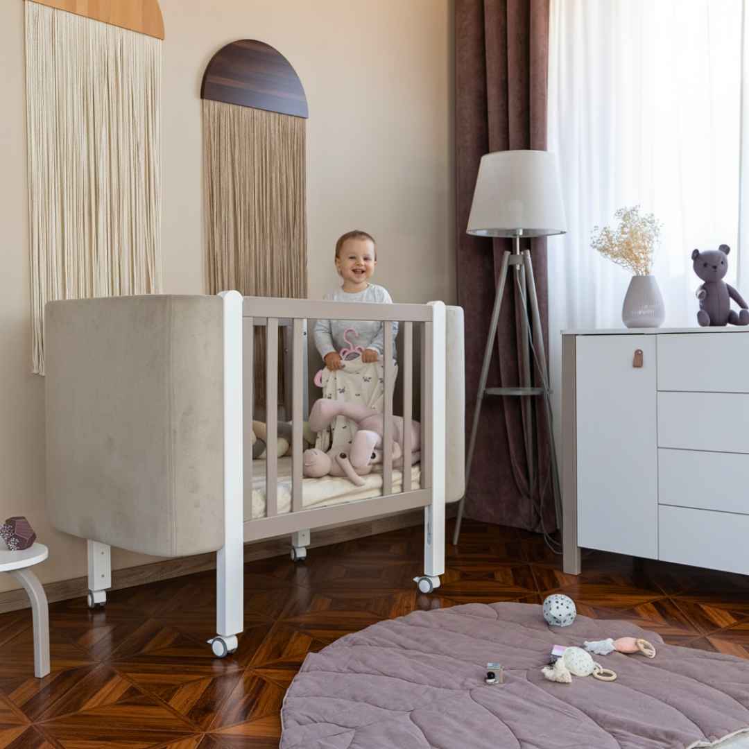 Boční stěnu postýlky lze zcela sejmout a vytvořit tak přístavnou postýlku.
