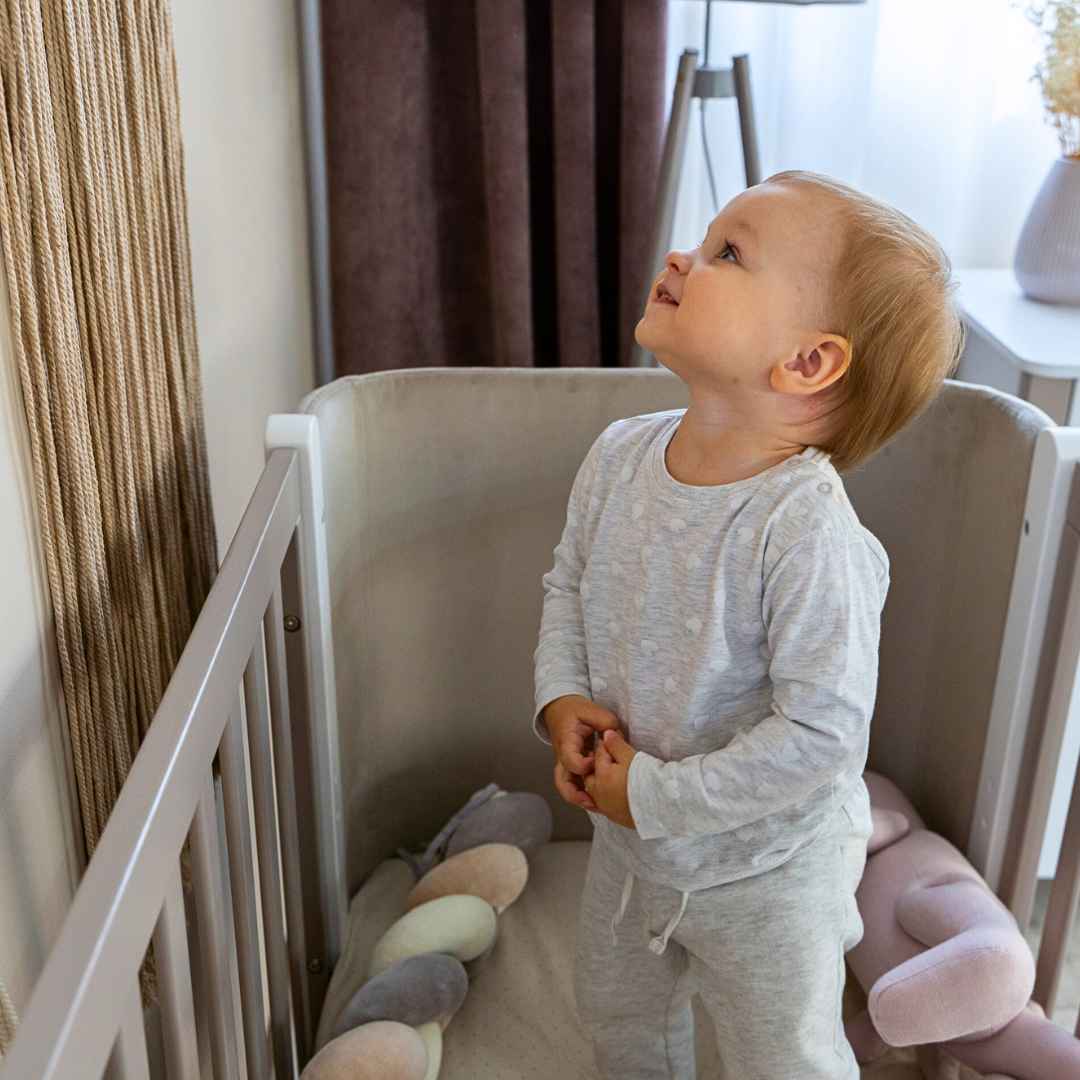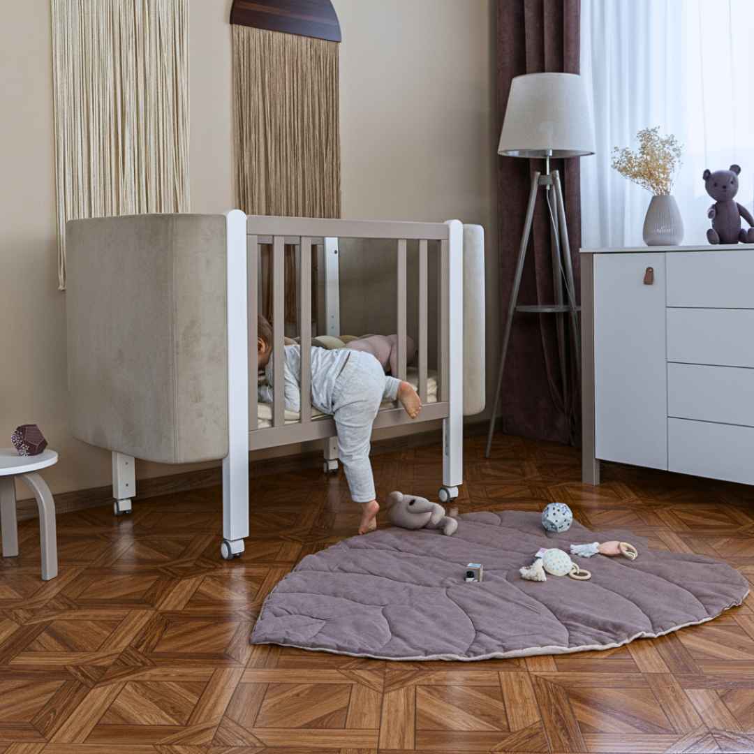 Když dítě trochu povyroste, můžete vyjmout tři příčky na boční straně a vytvořit bezpečný vstup, kterým může dítě samo do postýlky vlézt a vylézt z ní.