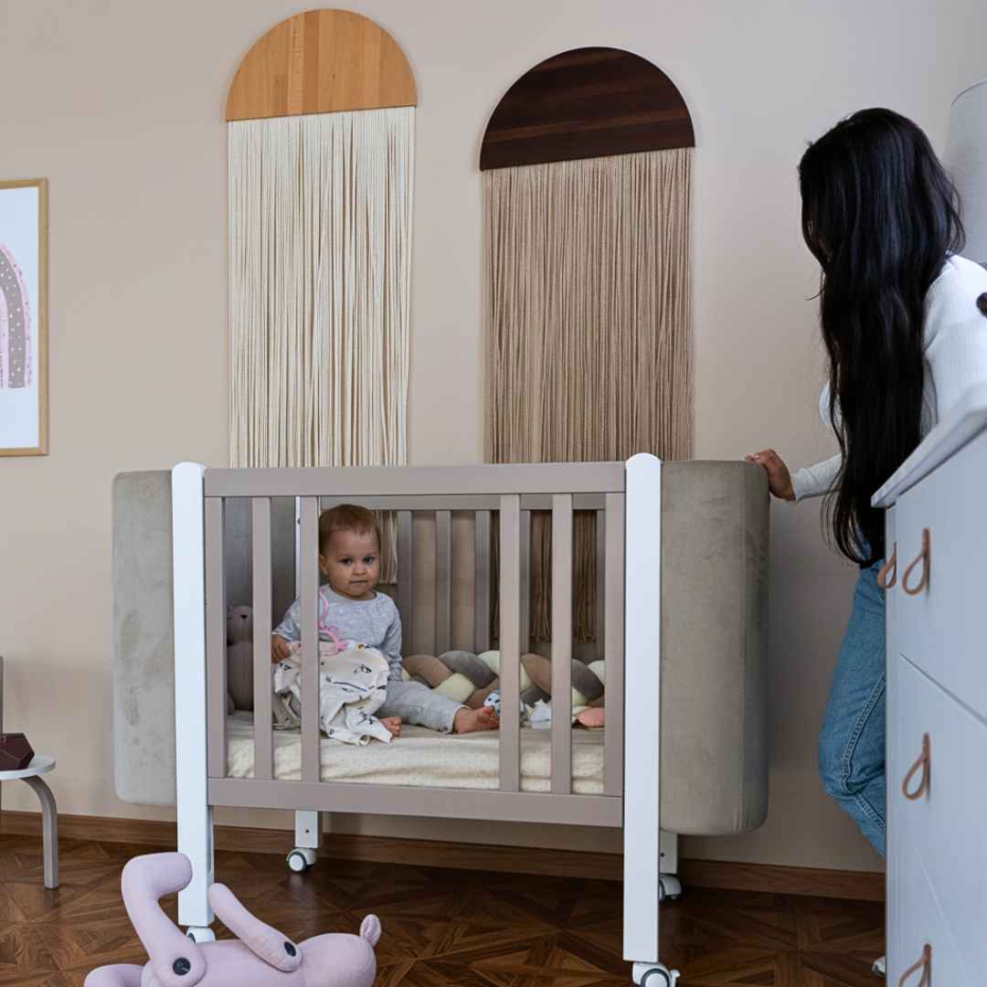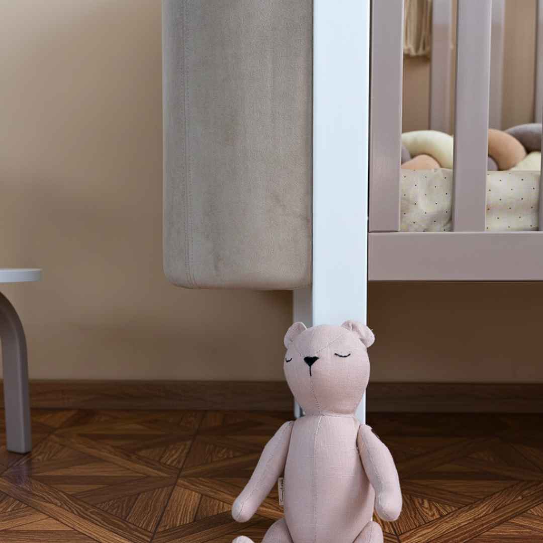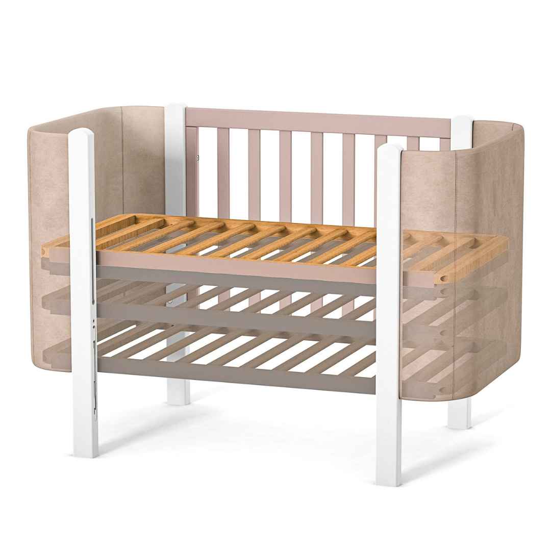Výšku ložné plochy dětské postýlky Zukko Soft lze snadno nastavovat – zvyšovat nebo snižovat podle potřeby.