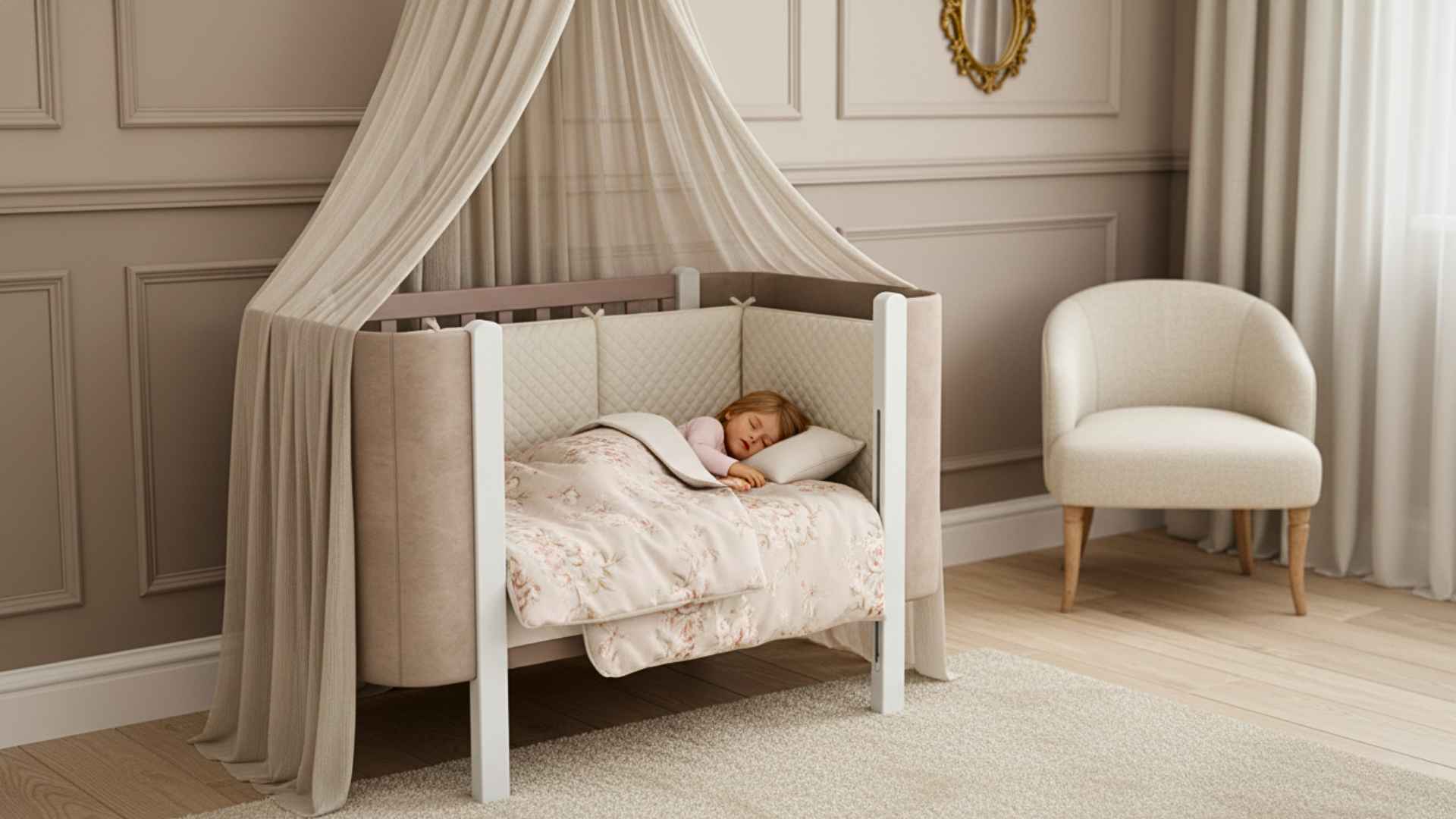 Pohyblivá boční stěna je vybavena bezpečnostním mechanismem, aby ji dítě nemohlo samo spustit.