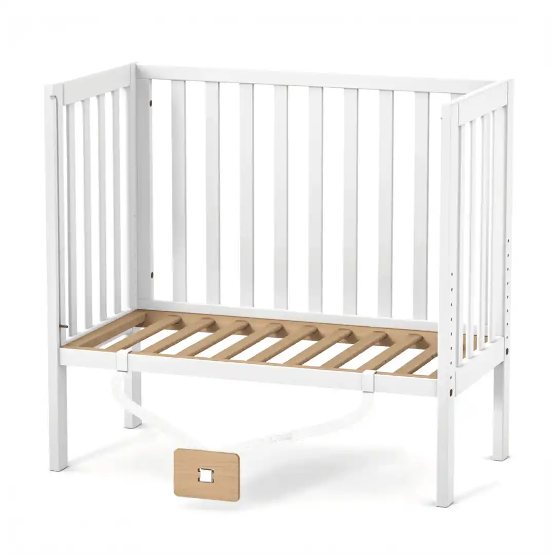 Vlastností postýlky je možnost nastavení výšky spací plochy, díky čemuž se nemusíte s miminkem příliš sklánět. Výšku lze snadno upravit – spací plochu zvýšit nebo snížit podle potřeby.