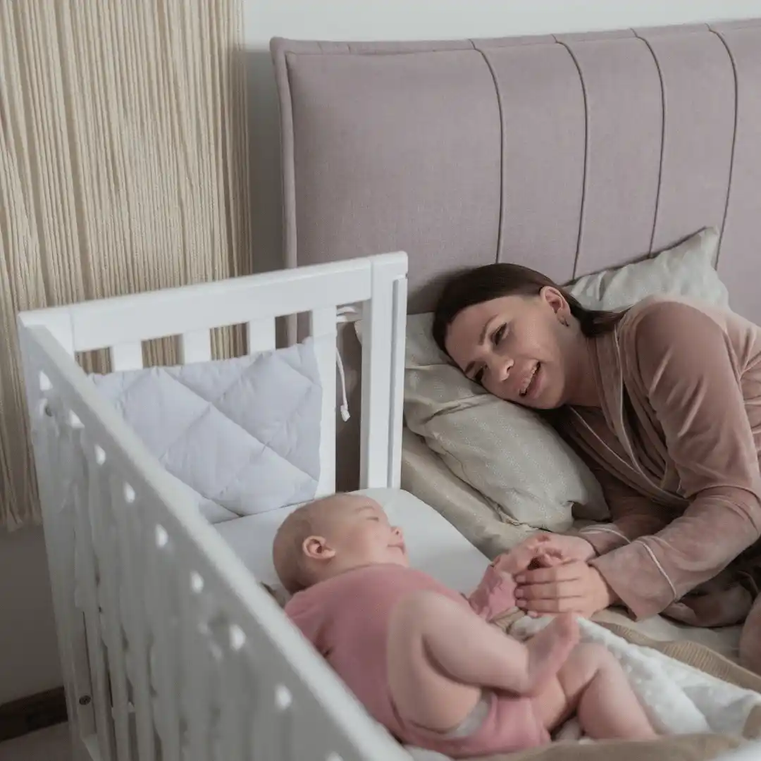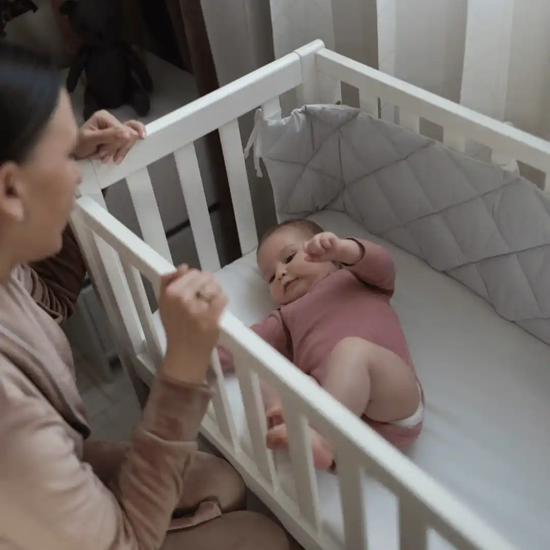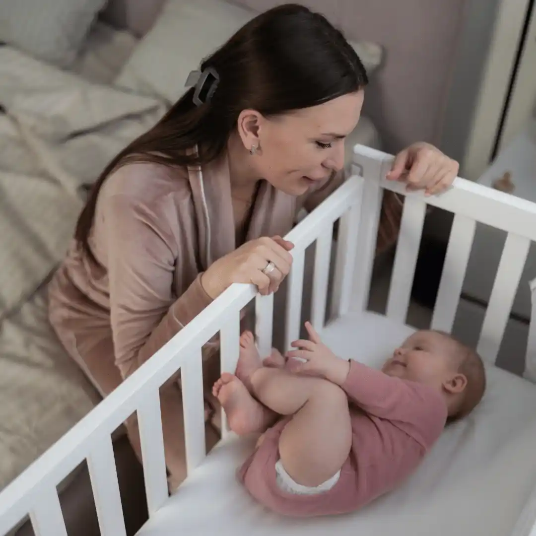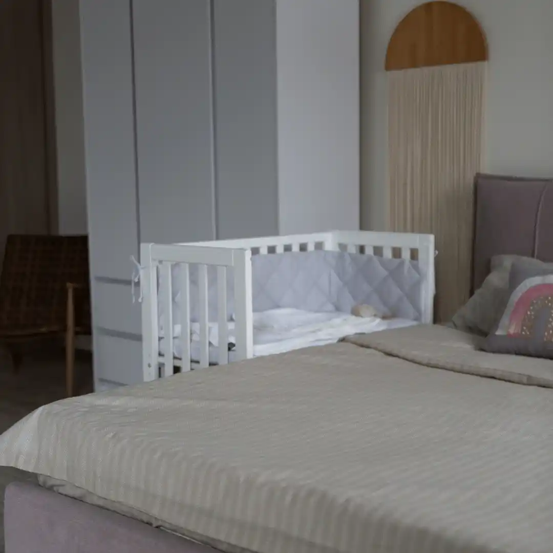 Doporučujeme použít speciální uchycení, aby byla dětská postýlka pevně připevněna k velké posteli.