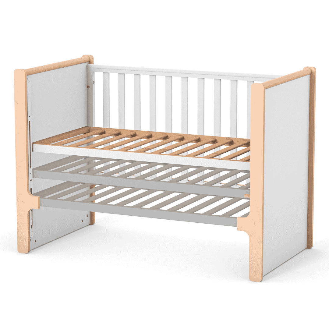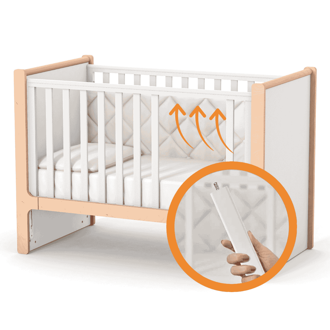Když dítě trochu povyroste, můžete odstranit tři prostřední příčky a vytvořit tak bezpečný vchod, kterým dítě může samostatně vylézat a zalézat do postýlky. Bezpečné příčky jsou navrženy tak, aby je rodiče mohli snadno vyjmout, ale dítě ne.