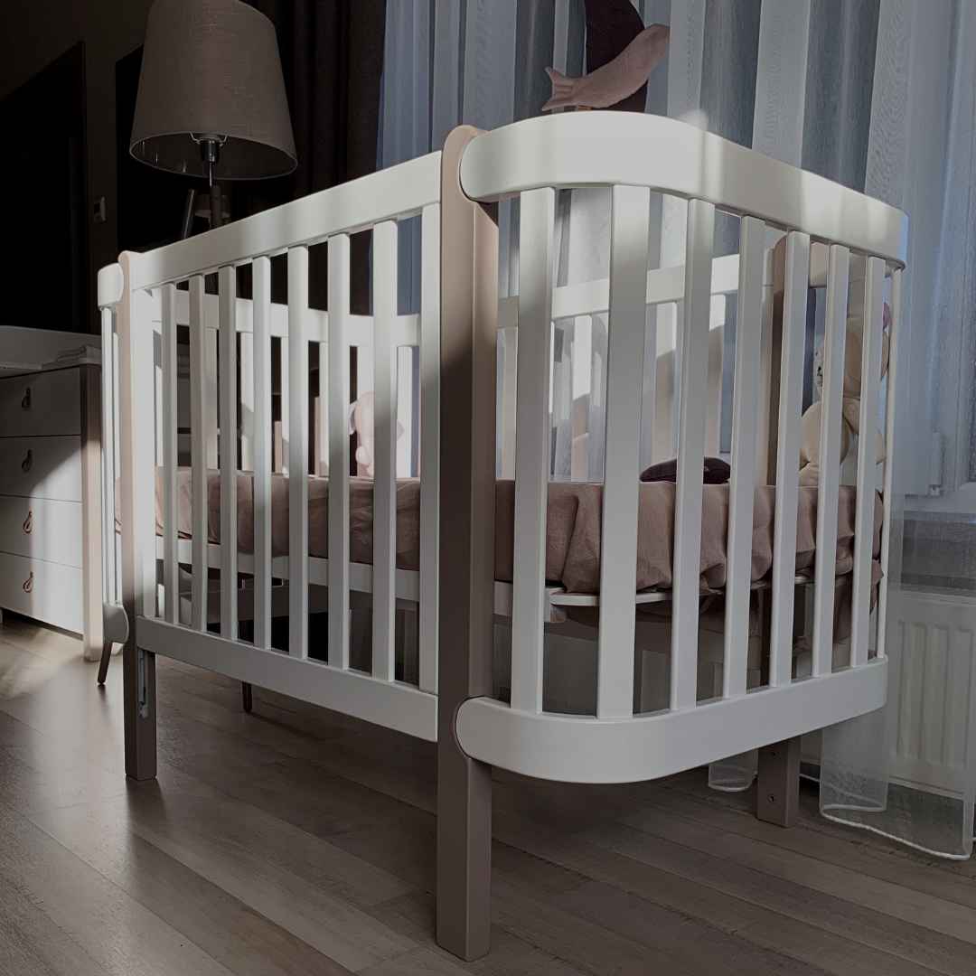 Krásná dětská transformovatelná kolébka a postýlka Zukko z přírodního dřeva, ošetřená ekologickými barvami!