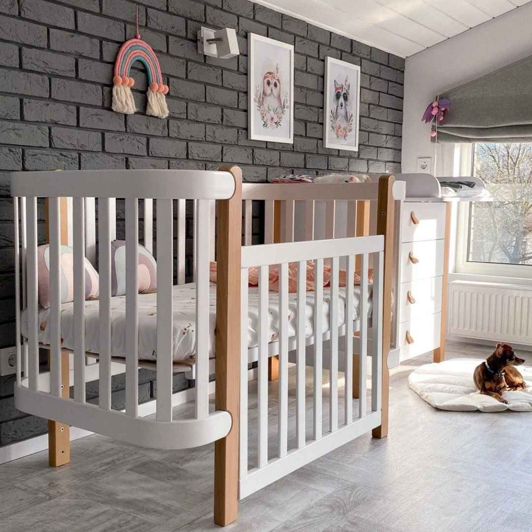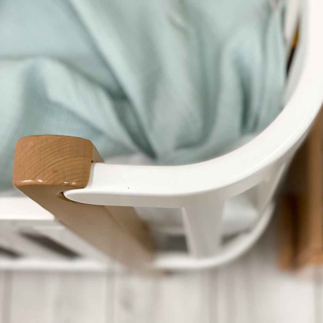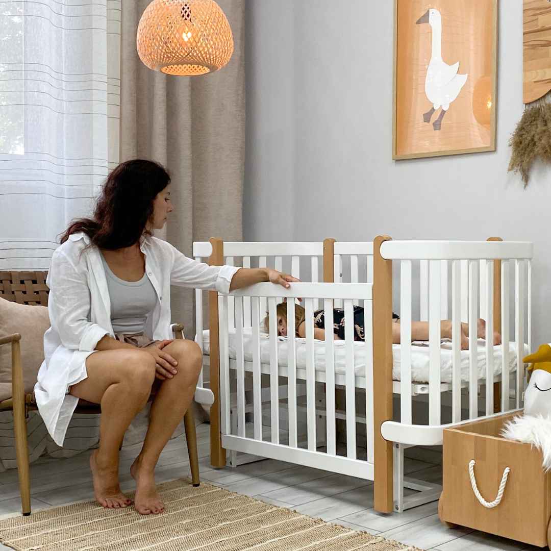 Stylová a moderní dětská kolébka a postýlka 2 v 1 z přírodního dřeva.