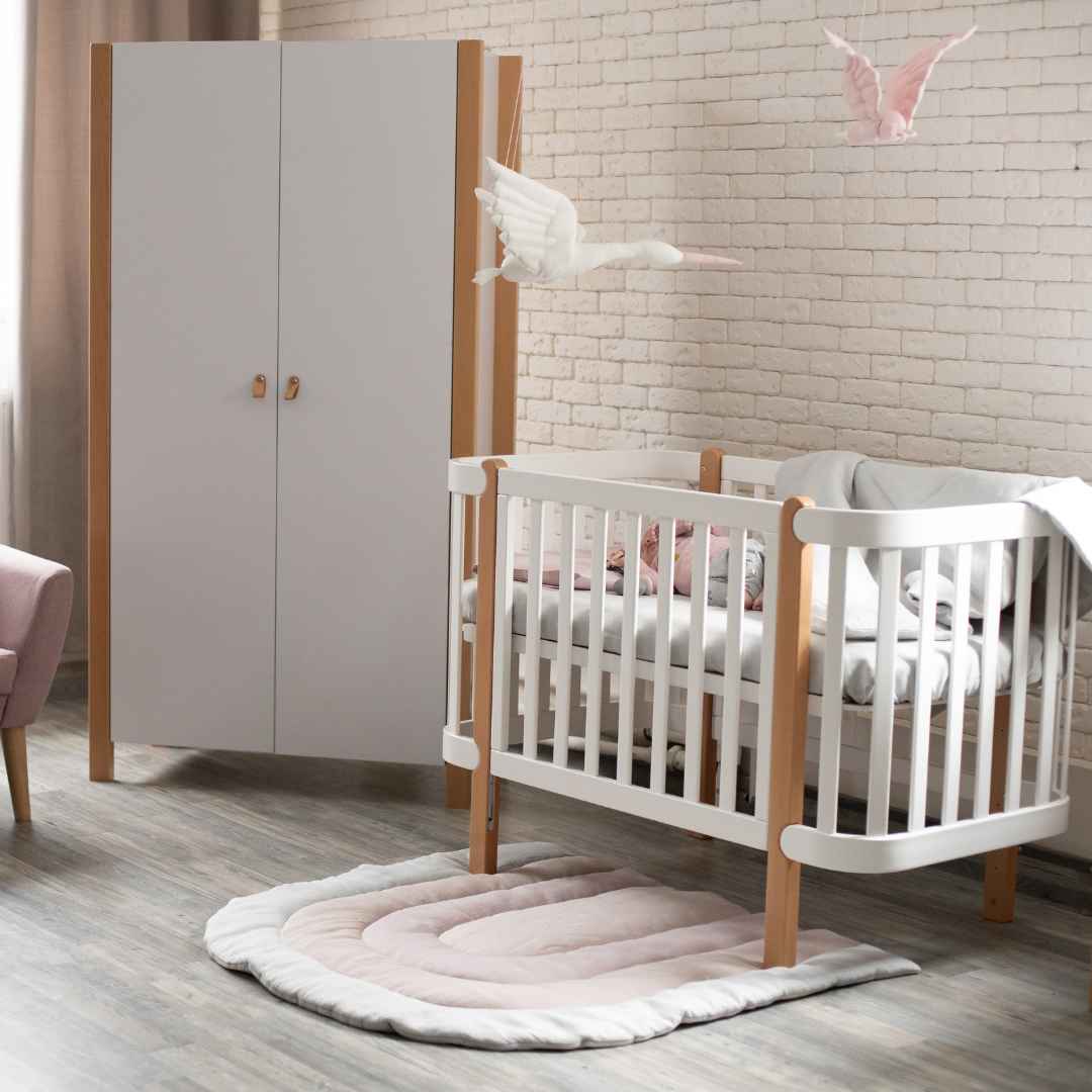 Šířka postýlky a kolébky umožňuje pohodlný průchod výrobku na kolečkách všemi standardními dveřními otvory.