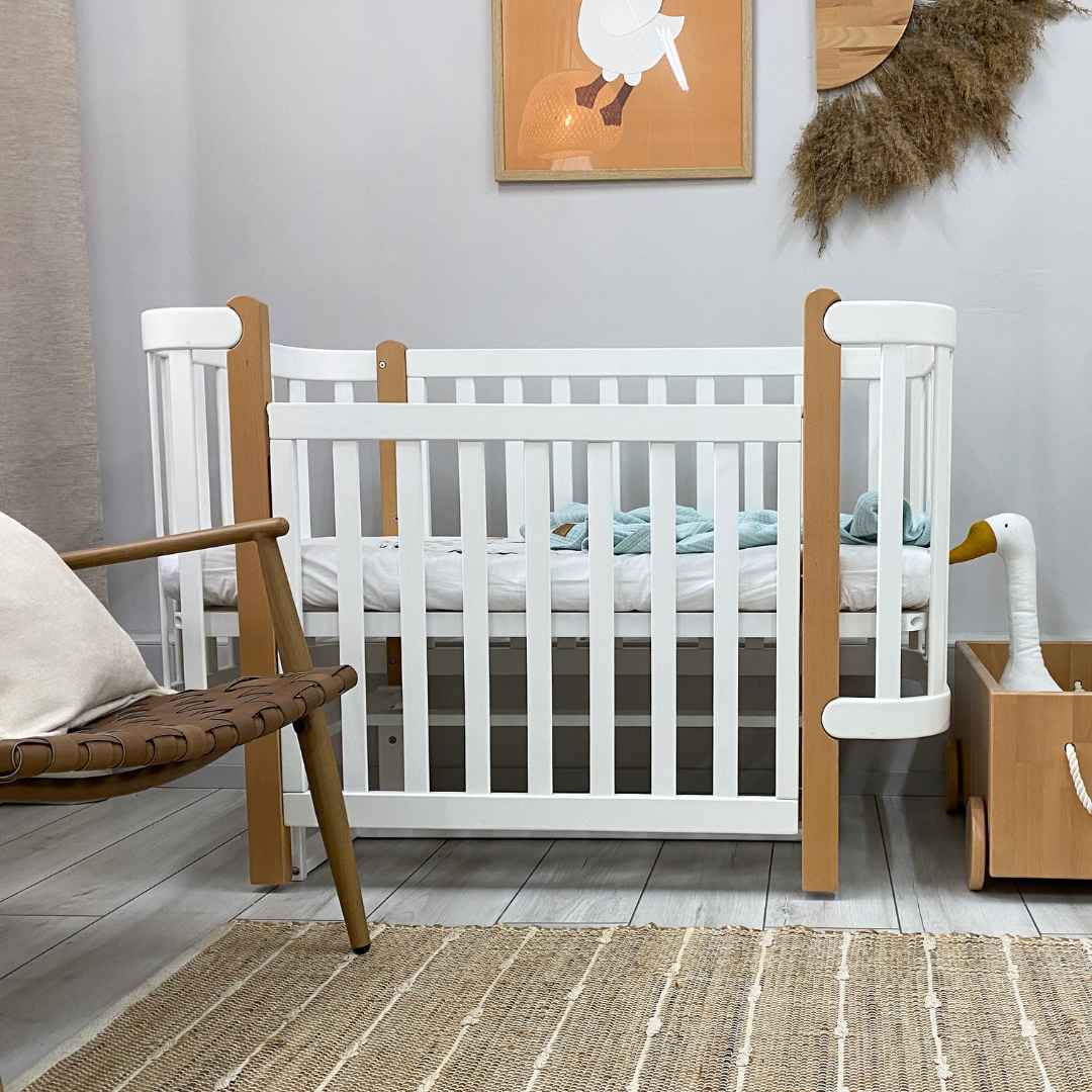 Krásná dětská transformovatelná kolébka a postýlka Zukko z přírodního dřeva, ošetřená ekologickými barvami!