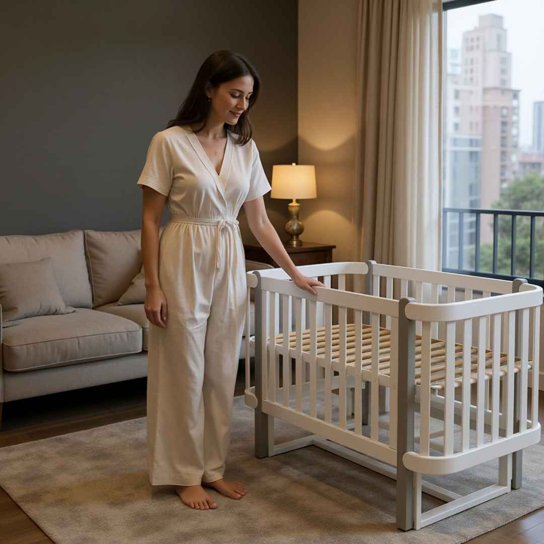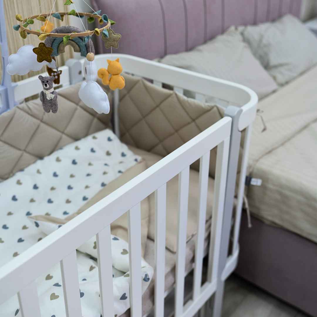 Šířka postýlky a kolébky umožňuje pohodlný průchod výrobku na kolečkách všemi standardními dveřními otvory.