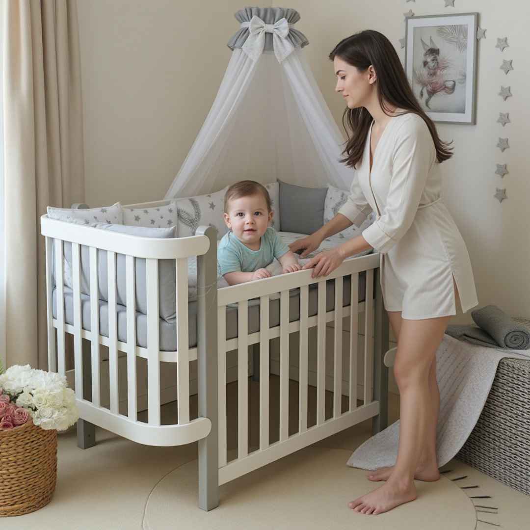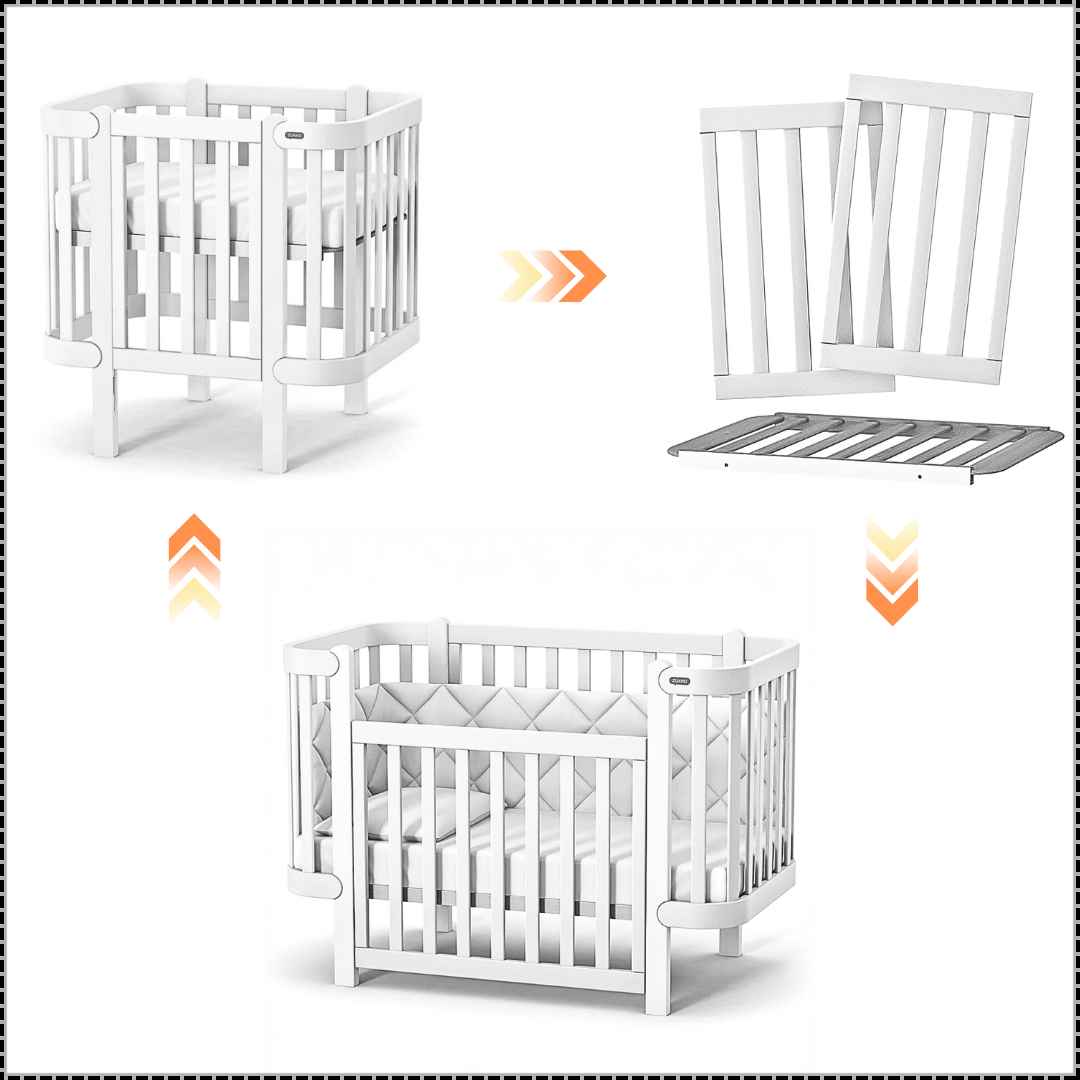 Když dítě trochu povyroste, můžete odstranit tři prostřední příčky a vytvořit tak bezpečný vchod, kterým dítě může samostatně vylézat a zalézat do postýlky. Bezpečné příčky jsou navrženy tak, aby je rodiče mohli snadno vyjmout, ale dítě ne.