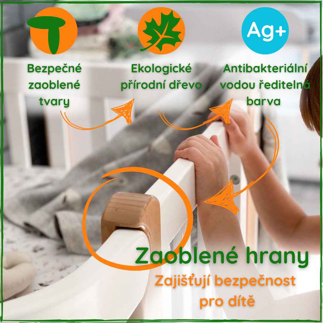 Nádherná dětská postýlka Zukko z přírodního dřeva, ošetřená ekologicky šetrnými barvami!