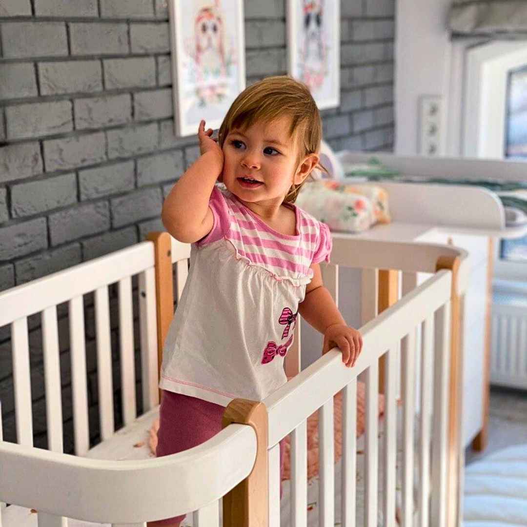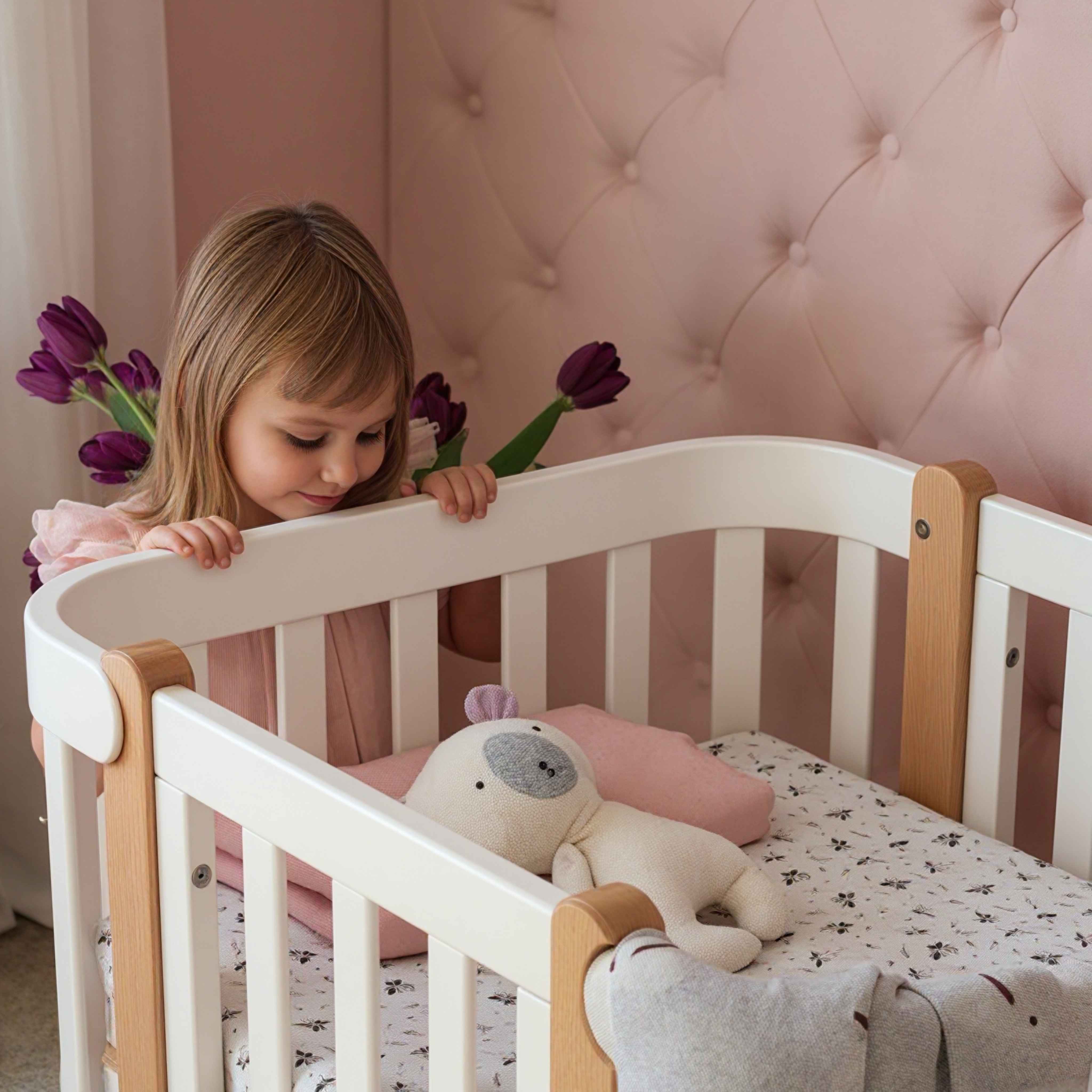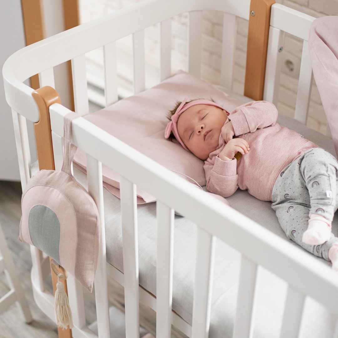 - Dětská mini postýlka o rozměrech 80×60 cm – velmi praktická a pohodlná pro dítě do 12–16 měsíců.