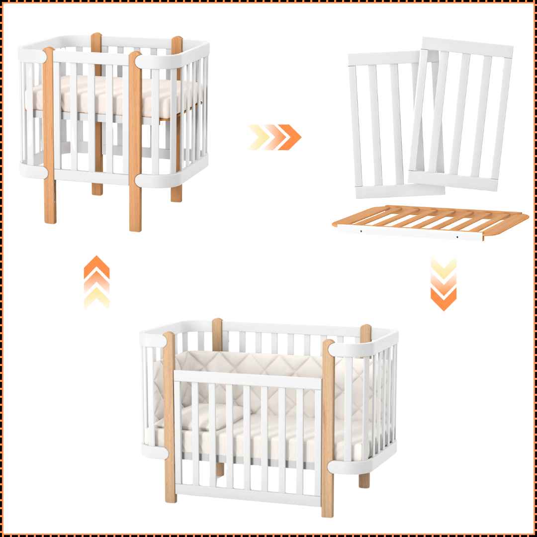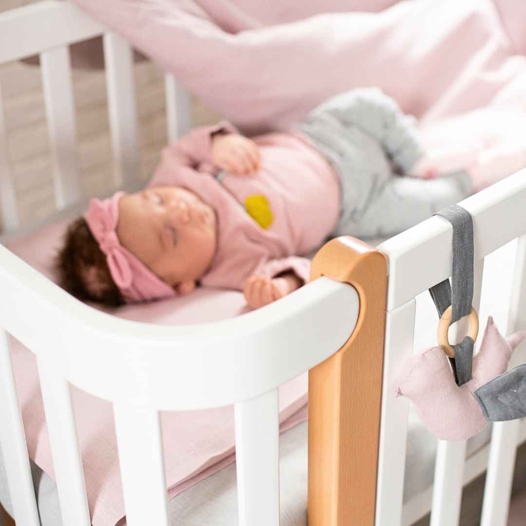 - Systém transformace, který snadno promění mini postýlku na velkou postýlku o rozměrech 120×60 cm, čímž vytvoří prostorné místo na spaní pro rostoucí dítě.