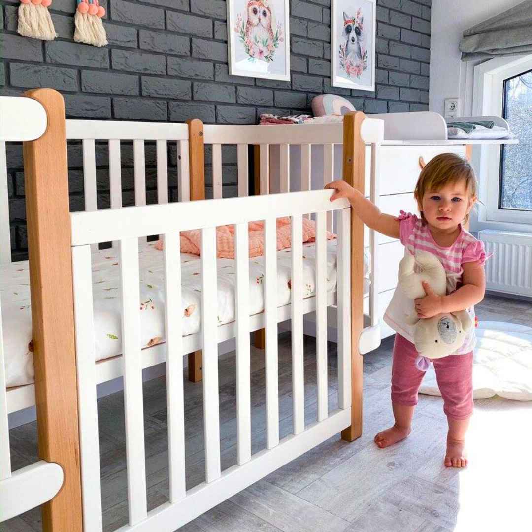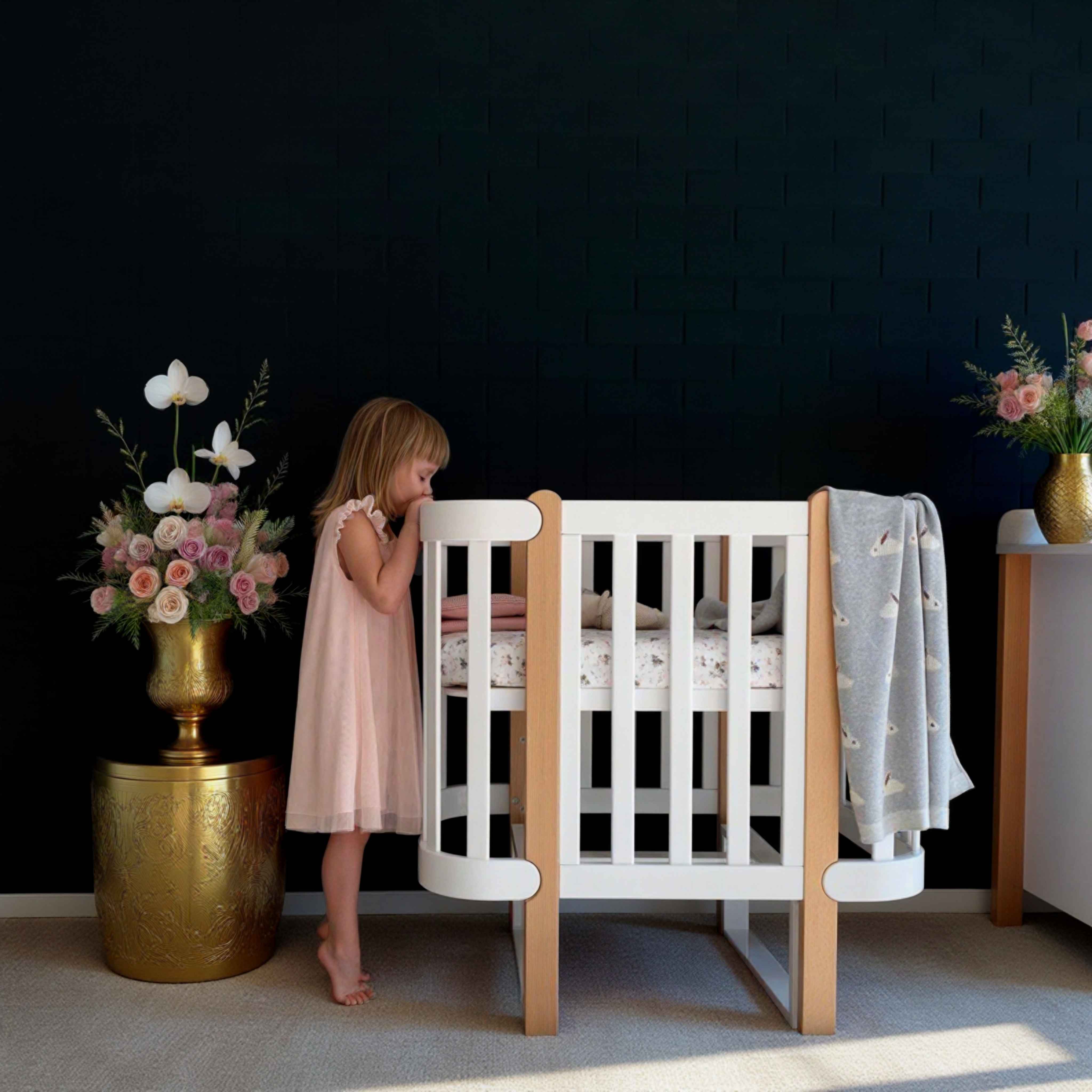 Stylová a moderní dětská kolébka a postýlka 2 v 1 z přírodního dřeva.