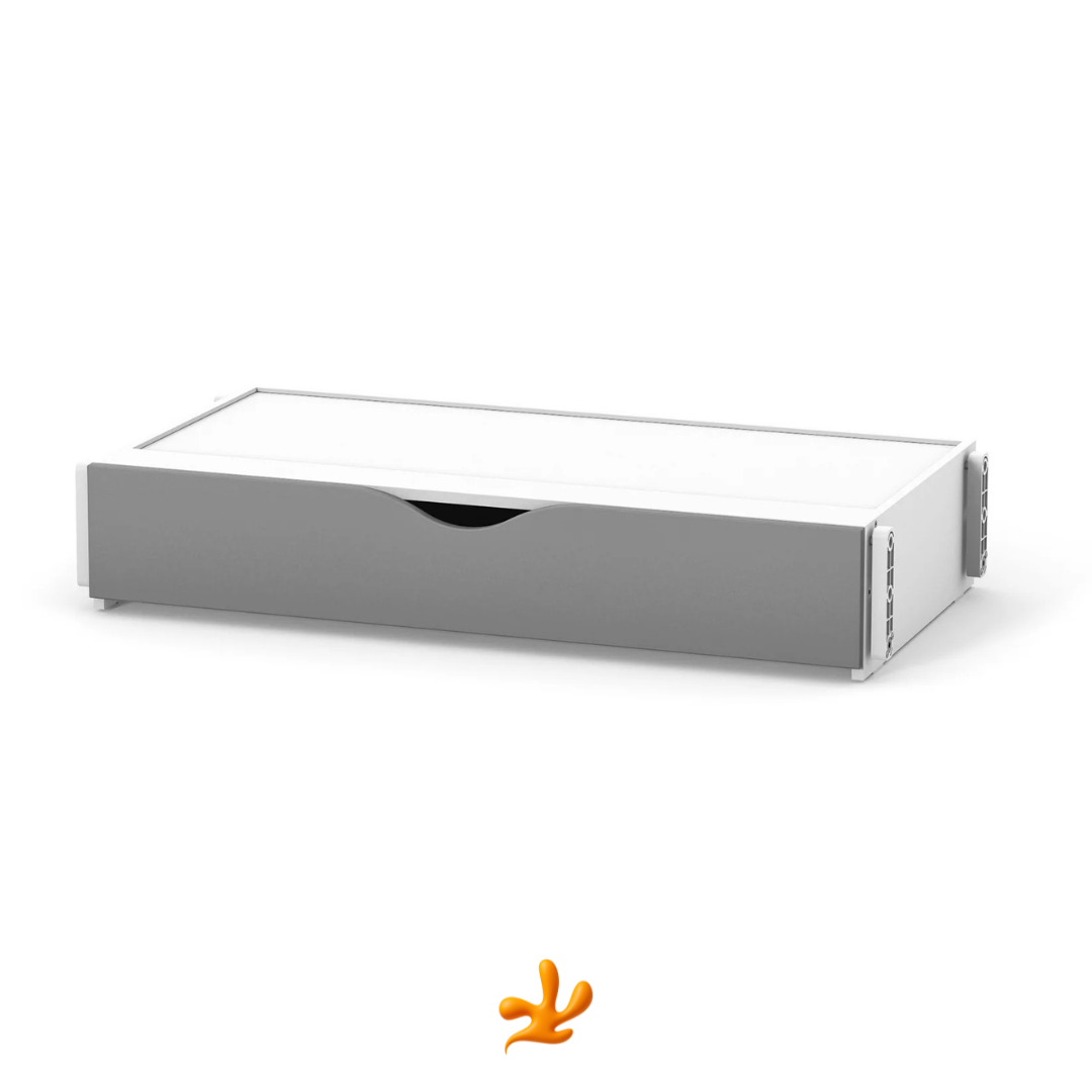 Houpací mechanismus Gekko pro uklidňování dítěte. Vhodný pro postýlky Sleeppo, Rinbo, Lappi, Robbi, Flatti. S úložným šuplíkem na věci. Grafitová/bílá.