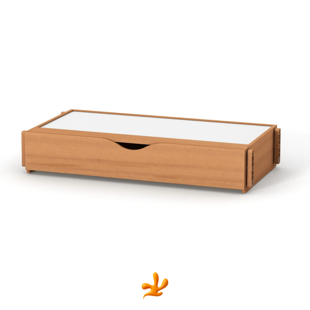 Houpací mechanismus Gekko pro uklidňování dítěte. Vhodný pro postýlky Sleeppo, Rinbo, Lappi, Robbi, Flatti. S úložným šuplíkem na věci. Přírodní buk.