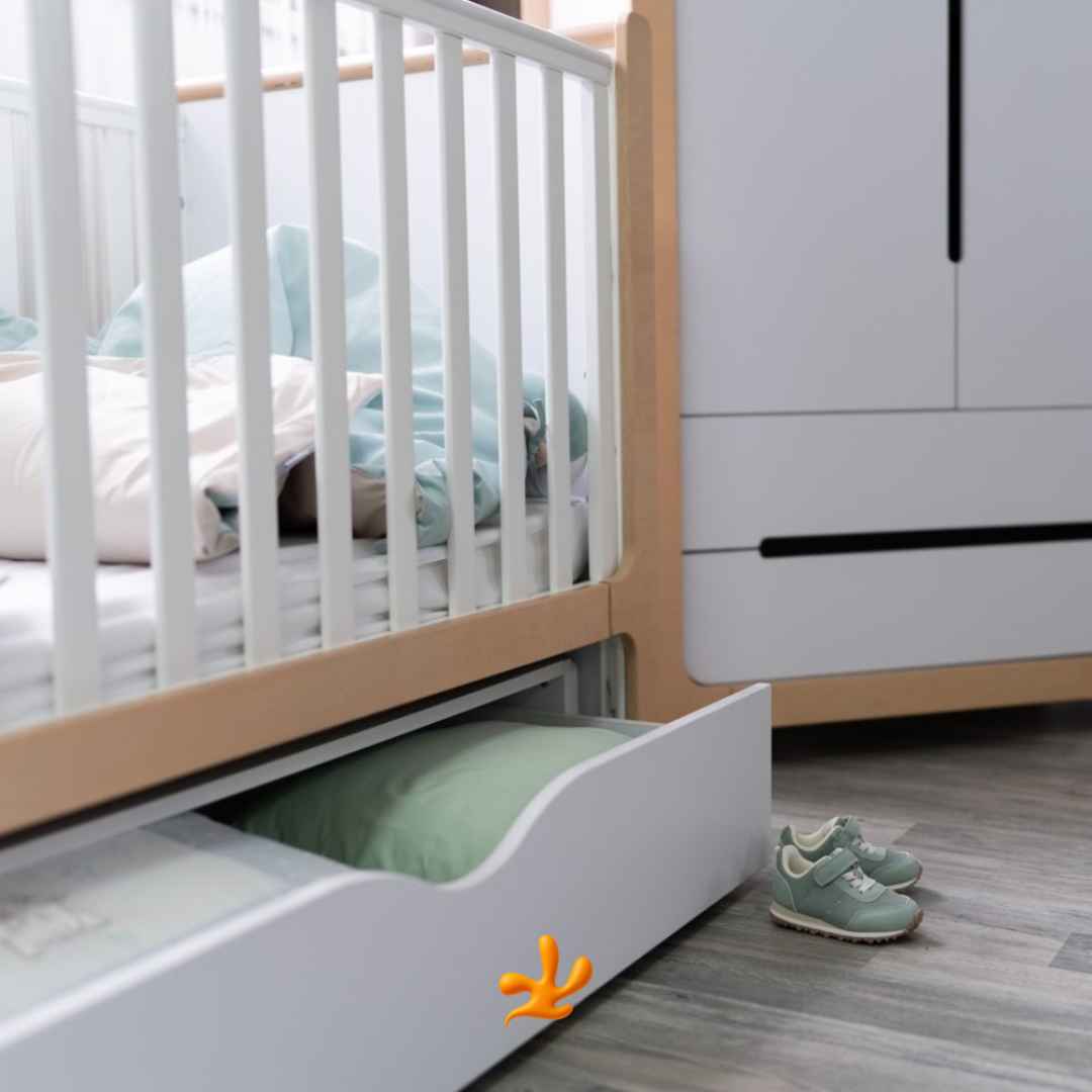Houpací mechanismus Gekko pro uklidňování dítěte. Vhodný pro postýlky Markito. S úložným šuplíkem na věci.