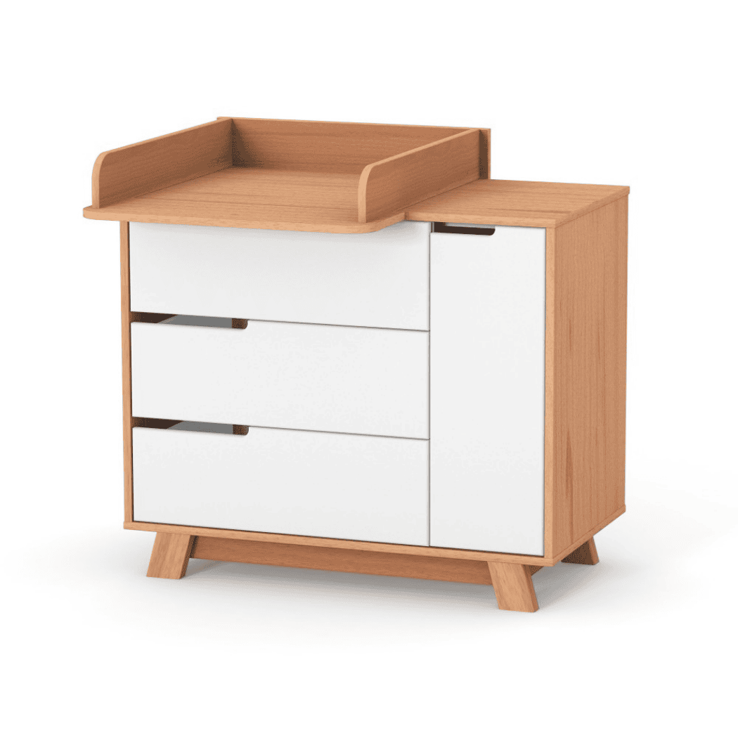 Úzký přebalovací stolek 600 pro dětskou komodu. Pohodlná výška komody a přebalovací plochy umožňuje snížit zátěž na záda maminky. Výhodou úzkého přebalovacího stolku 600 je, že vedle něj lze odložit věci potřebné k přebalování, které tak budou mimo dosah dítěte.