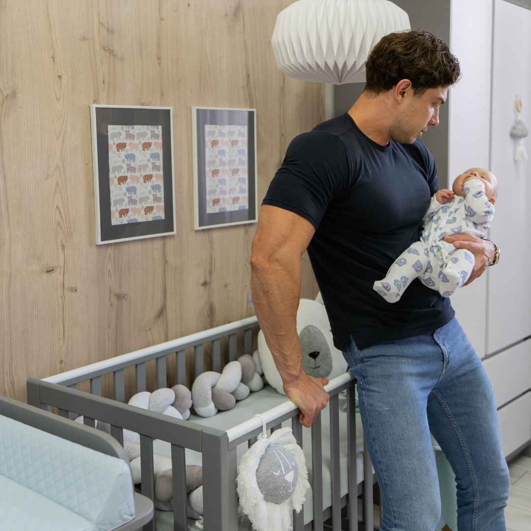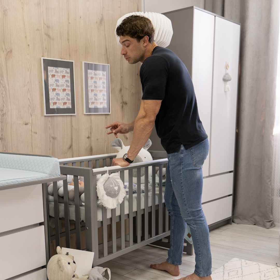 Vlastností postýlky je možnost nastavení výšky spací plochy, díky čemuž se nemusíte s miminkem příliš sklánět. Výšku lze snadno upravit – spací plochu zvýšit nebo snížit podle potřeby.