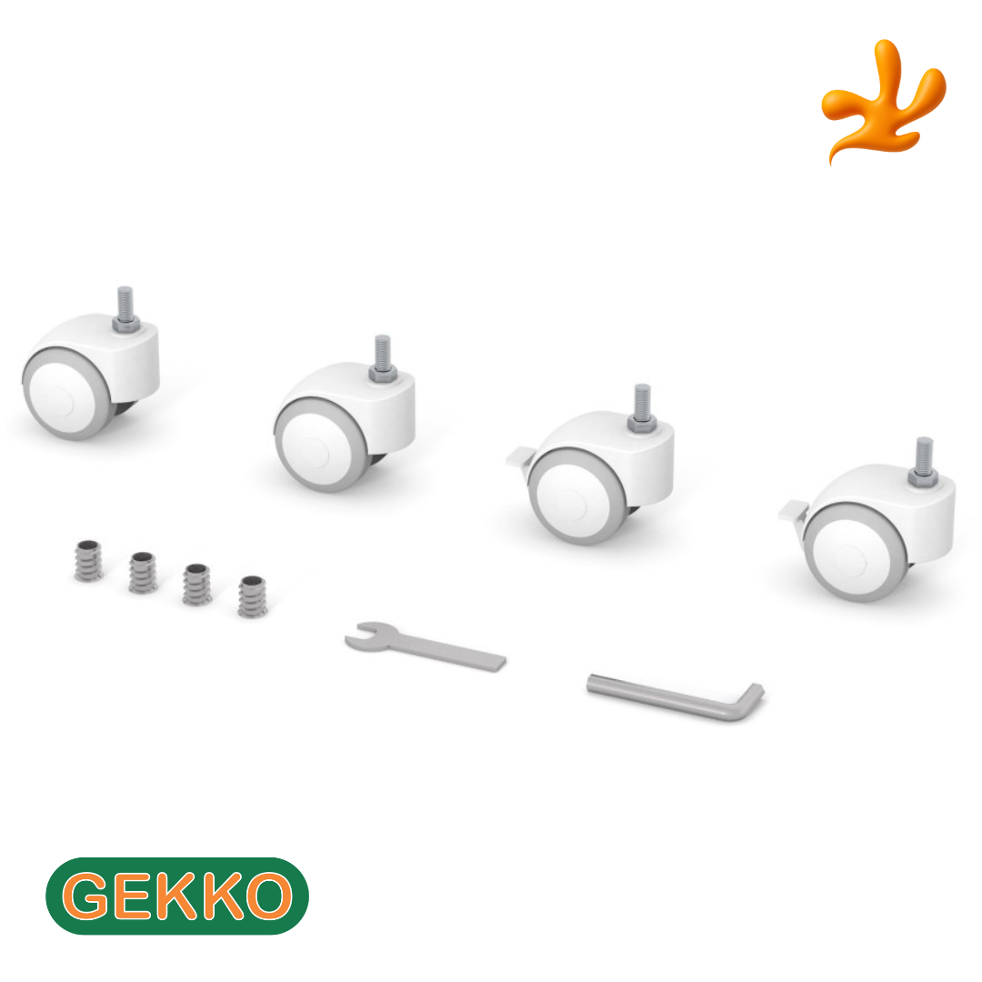 Sada koleček k dětské postýlce Gekko Kids je doplňková volba, která pomáhá učinit postýlku mobilní. Kolečka umožňují snadno změnit umístění – stačí postýlku posunout nebo přemístit do jiné místnosti.