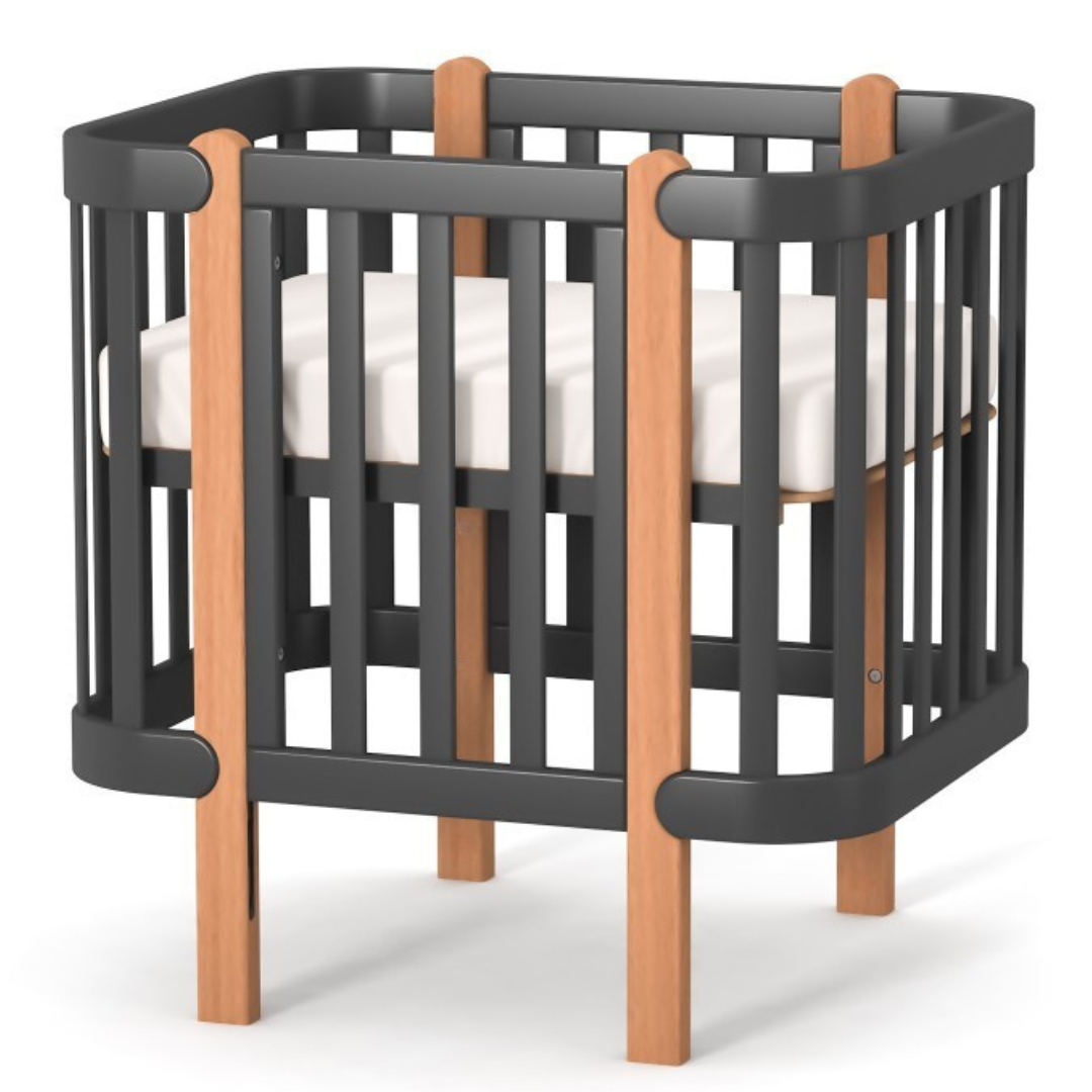 Mini postýlka byla vytvořena s důrazem na komfort a bezpečí. Stylové a funkční řešení pro novorozence – zaoblené tvary, leštěné povrchy, lamelový rošt pro dobrou ventilaci matrace a ložního prádla. Vyrobeno z přírodního buku a ošetřeno vodou ředitelnými antibakteriálními barvami a laky ze Švédska. Kování značky Hafele (Německo).